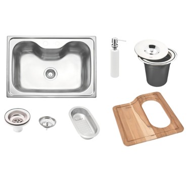 Cod fabricante : 94990/002Marca : TramontinaA Cuba de Sobrepor Tramontina Morgana 60 FX em Aço Inox com Acabamento Acetinado, 68 x 50 cm, com Lixeira de Embutir 5 L, Tábua de Madeira, Dosador de Sabão..